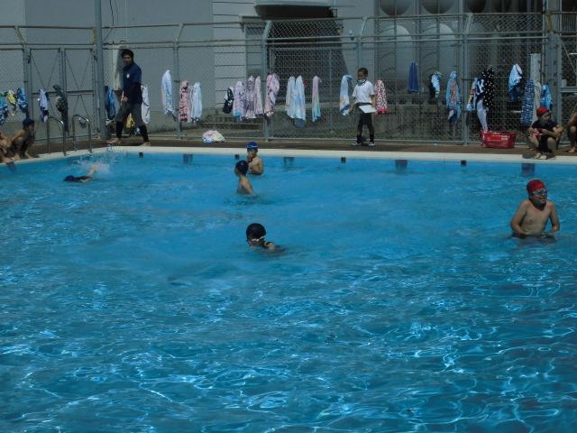 3・4年生が水泳の授業で、泳力調査をしました。3・4年生全員で25m泳げたのは3名。まだ水が怖いのか、すぐに立ち上がる子が多かったようです。