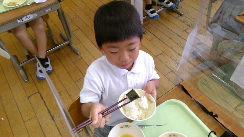 3年生は先日おはしの持ち方の学習をしました。今日はその成果を給食時間に確認、「さばを一口大に切る」「はしでのり巻きを作る」にみんなでチャレンジしてくれました。