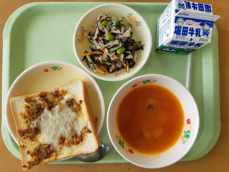 7月4日(火) カレートースト、牛乳、夏野菜ミネストローネ、枝豆サラダ