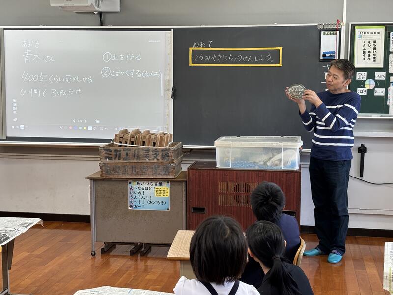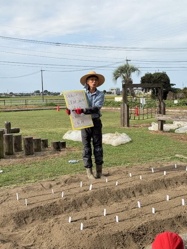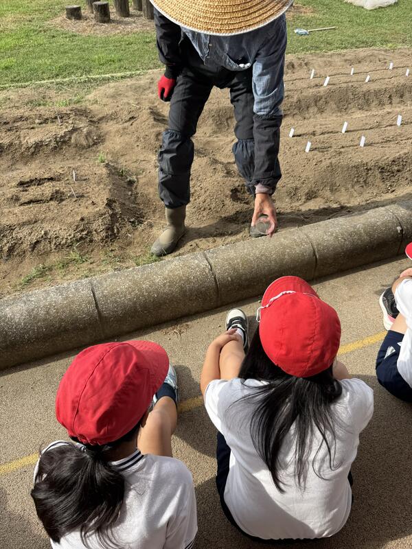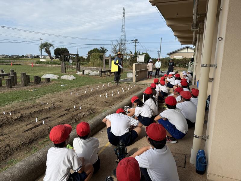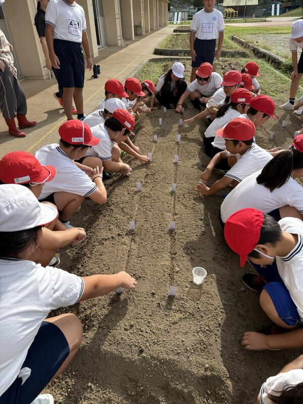 10/21(火)、3年生は、野菜名人の益田先生、地域学校協働活動推進員の皆さん(古閑さん、三枝さん、山村さん)の指導・協力のもと、4年生と一緒に「かぶの種まき」を行いました。