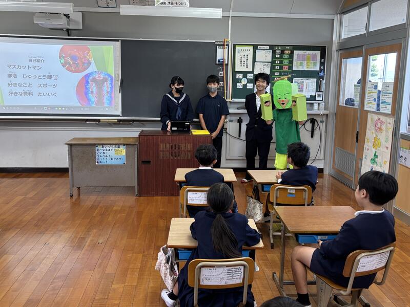 竜北中学校区では、毎年「オータム交竜会」と題して、中学校2年生が、それぞれの母校の小学生に授業を行っています。今年の「オータム交竜会」は、『ふるさとへの愛を深めよう』をテーマに、氷川町の生き物や自然、農産物、人や文化、そして歴史などについて学びます。
