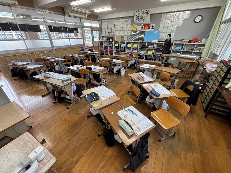 本校でも、「シェイクアウト訓練」として、緊急地震速報を見聞きした際に、それぞれの場面に応じた身の安全を確保するための行動を身に付けるとともに、日頃から地震や津波への備えの重要性を再認識するために実施いたしました。