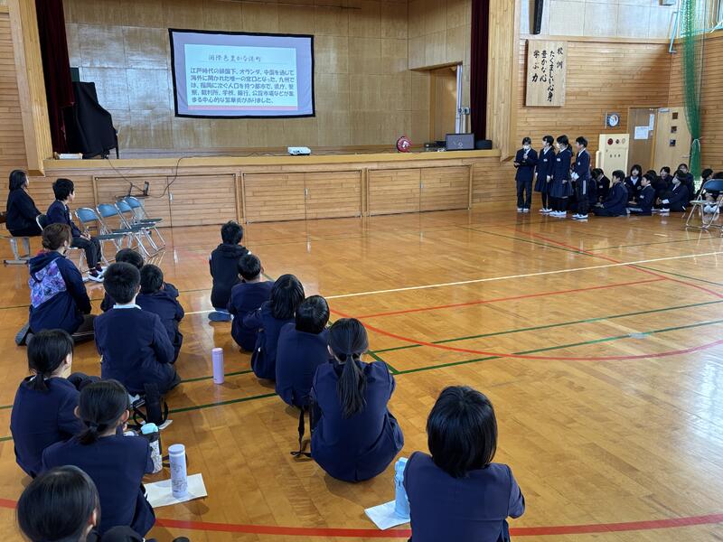 私は、今日の交竜会で、竜北中の先輩方が「氷川町の干拓」について授業してくださるのが、とっても楽しみです。しっかり学習しようと思います。そして午後は、地域の方の指導で「フラワーアレンジメント」の体験をさせていただきます。はじめてのことなので、とってもうれしいです。