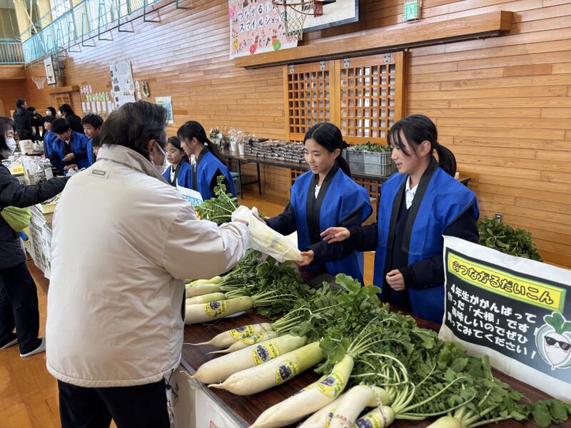 恒例となりました「いきいき感謝祭」は、日頃より地域の皆様から、ふるさと氷川町の産業、文化、自然・生き物、歴史・文化等について「ふるさと氷川学(地域理解学習)」として学ばせていただいたことを活かし、感謝の心を込めて子どもたちが学びの発信や栽培した野菜、製品化した肥料、お菓子、小物等の販売をさせていただくものです。毎年、多くの地域の皆様との交流を通して、ふるさと氷川に対する愛着や誇りを高める貴重な機会となっています。