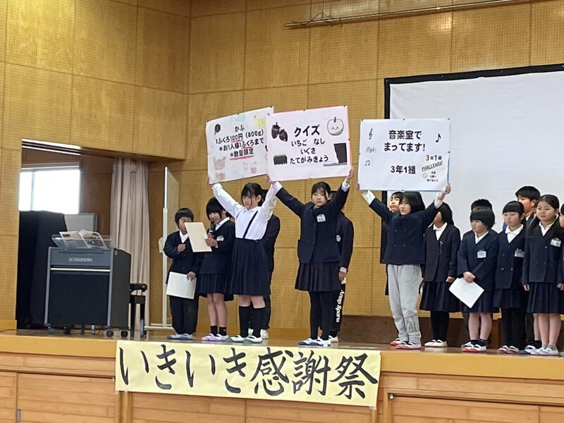 本校は、平成30年度の文部科学省委託事業「小中学校等における起業体験推進事業」の指定を受けて以来、起業体験活動を通した「ふるさとの『人・もの・こと』と出会う」キャリア教育の充実に取り組んで参りました。その教育活動の発信の場として「いきいき感謝祭」を毎年開催しています。