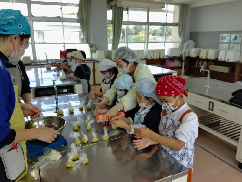 調理の手順をしっかりと聞いた子どもたちは、一つ一つの工程を丁寧に行いながら、おいしい『ちゃきんしぼり』を完成させました。