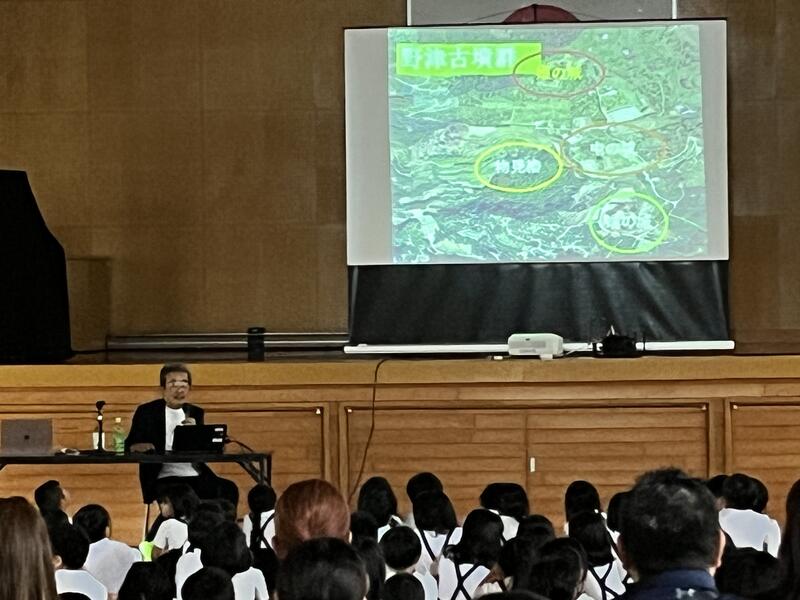 氷川町の学識経験者の宮村先生を講師として招き、「大好きっ!氷川町」と題し、氷川町の歴史や成り立ち、氷川町の特徴についてご講演いただきました。初めて知る氷川町のさまざまなことに、子どもたちは興味津々でした。