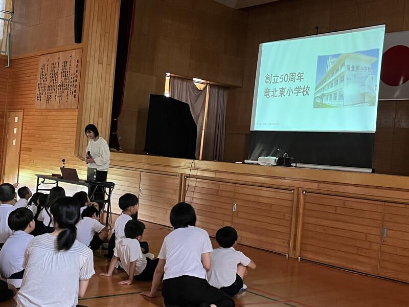 その後は、「創立50周年竜北東小学校」と題し、本校の歴史を写真で振り返るコーナーがありました。たくさんの懐かしい写真に、歓声があがりました。