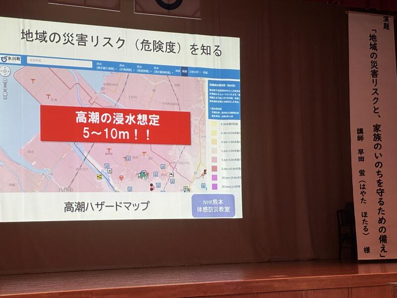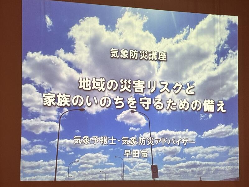 八代市出身の気象予報士・防災士として有名な早田 蛍さんを講師として迎え、「地域の災害リスクと家族のいのちを守るための備え」という演題でご講演いただきました。
