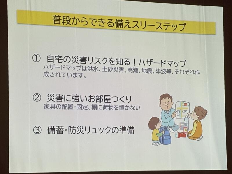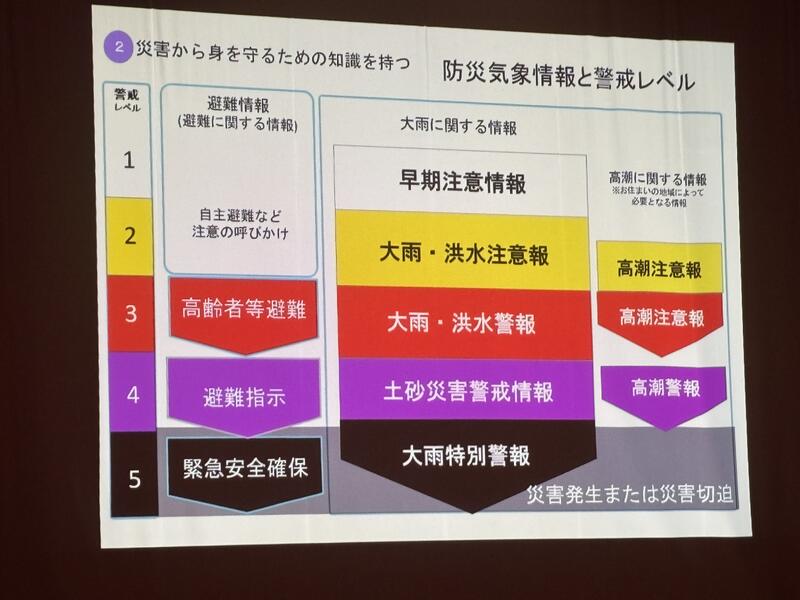 ハザードマップの活用や避難計画(マイタイムライン)の作成についてなどの実践的なお話は大変ためになりました。