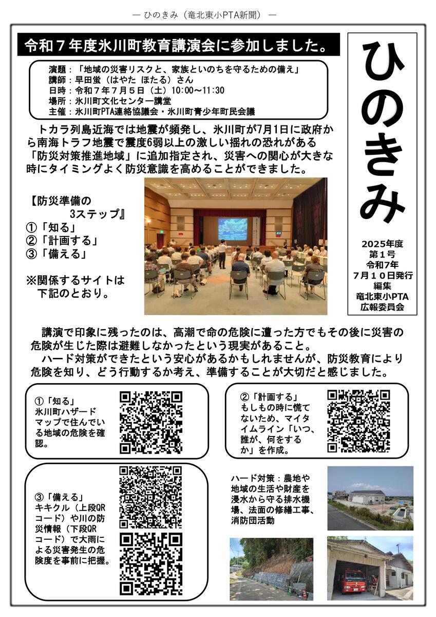 【広報委員会】「ひのきみ第1号」を発行しました(PTA新聞)