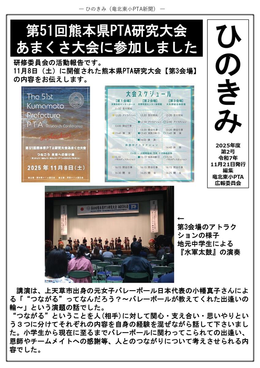 【広報委員会】「ひのきみ第2号」を発行しました(PTA新聞)