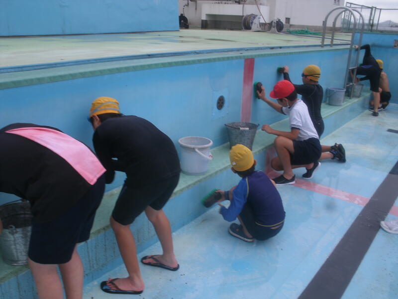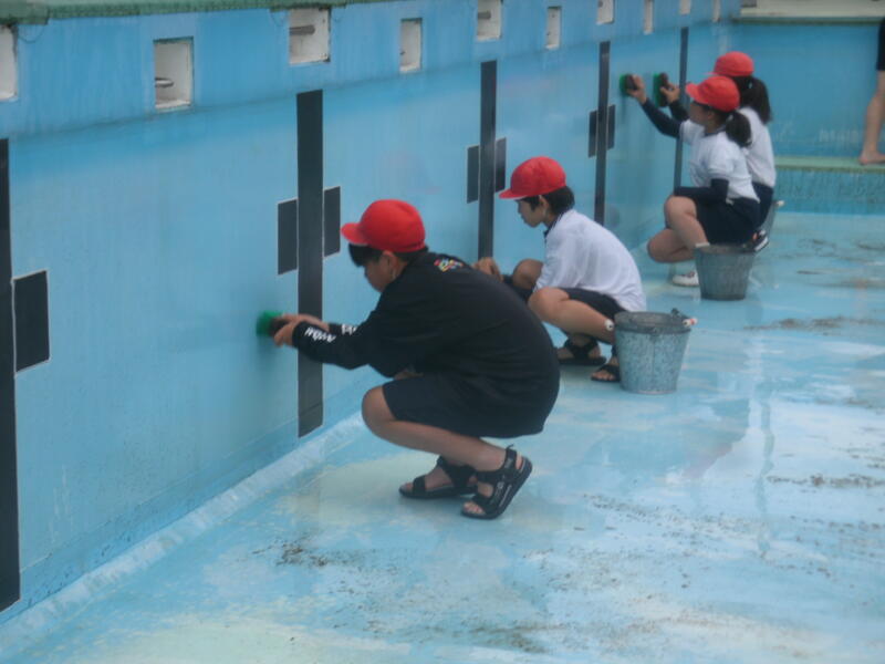 6/3(火)、5・6年生がプール掃除を行いました。