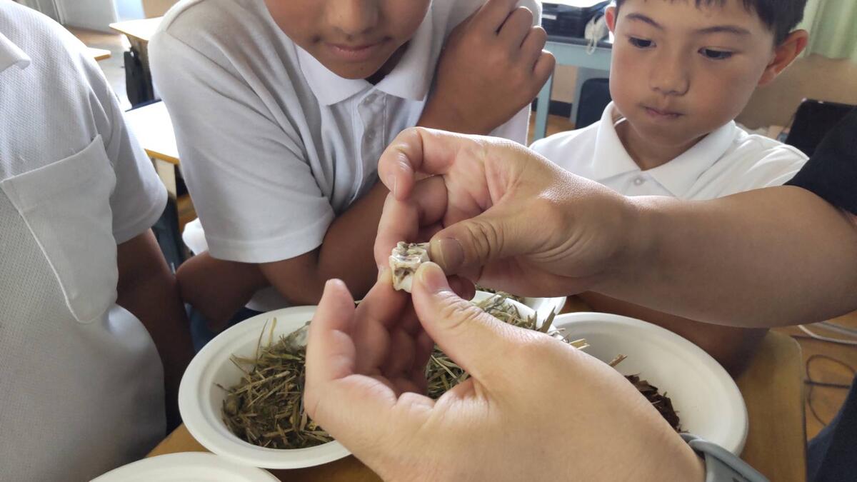 酪農の仕事の実際を編集した動画やエサの実物、牛の歯など見せていただきながら、教室にいながらリアルに体験したような感じになり、とても有意義な時間でした。