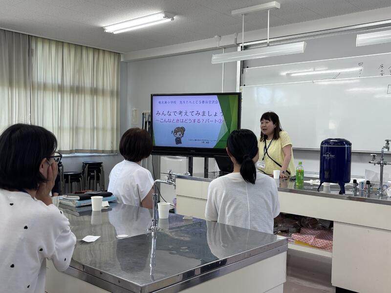 次に、「CSの日」に小学生に対し授業を行う中学2年生の代表4人(子どもCS委員)から、各学年の学習内容について提案がありました。