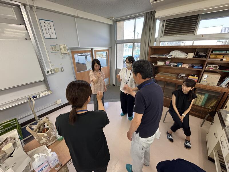 命に関わる研修ですので、職員は皆、真剣そのものでした。研修後、隊員の方から、「こんなに真剣に取り組んでくれる先生方がいらっしゃる学校に、自分の子も通わせたいと思いました」という言葉をいただきうれしくなりました。