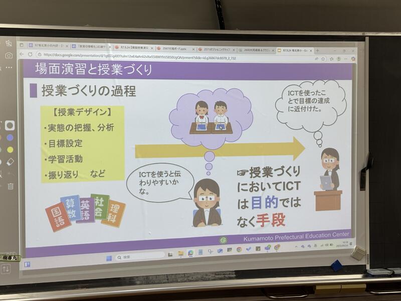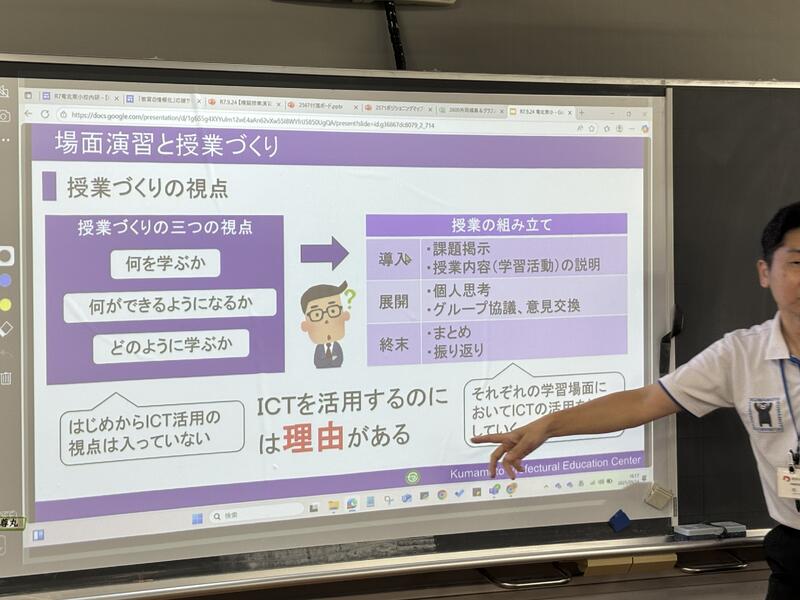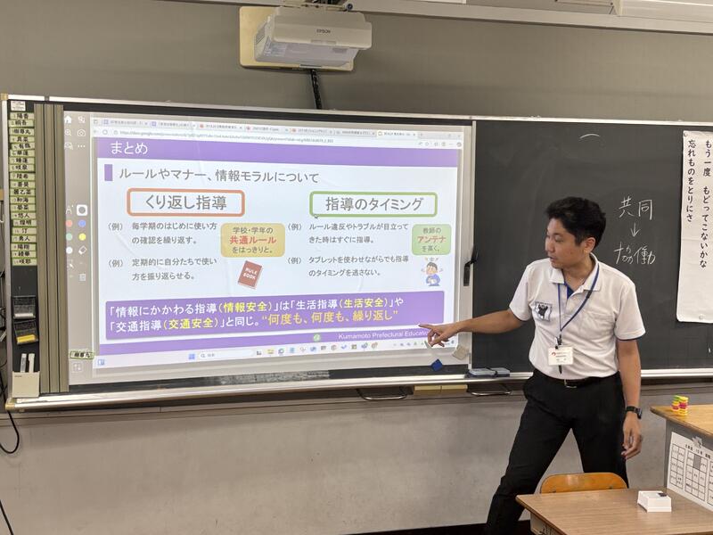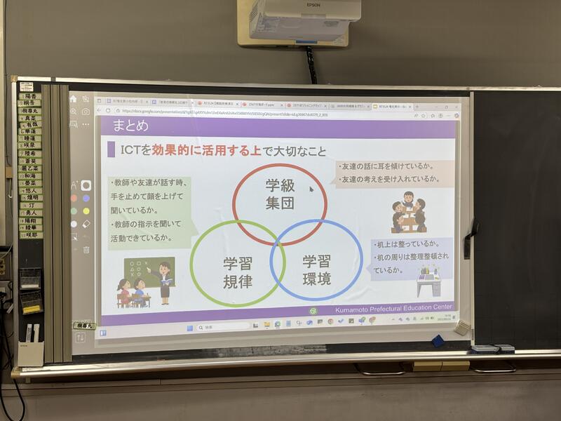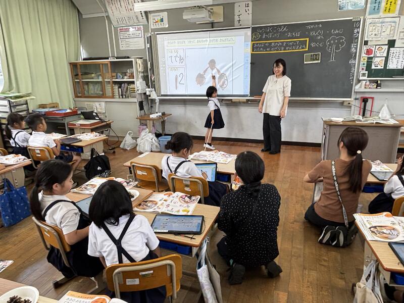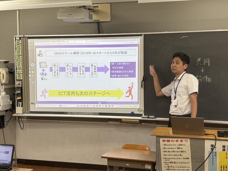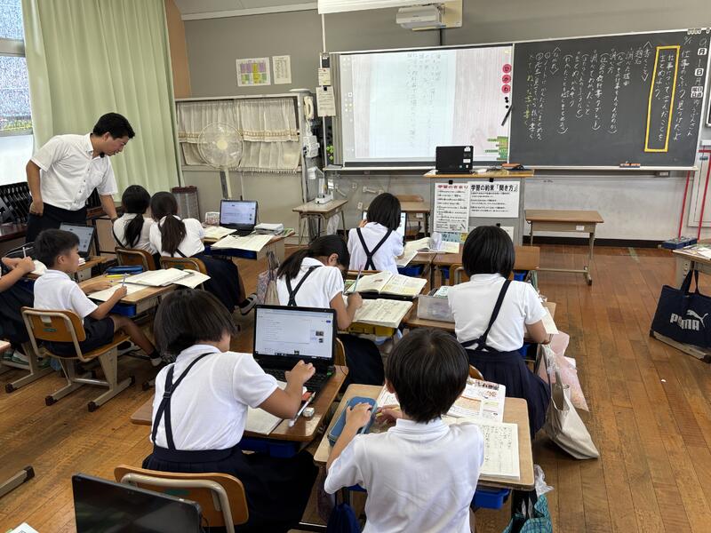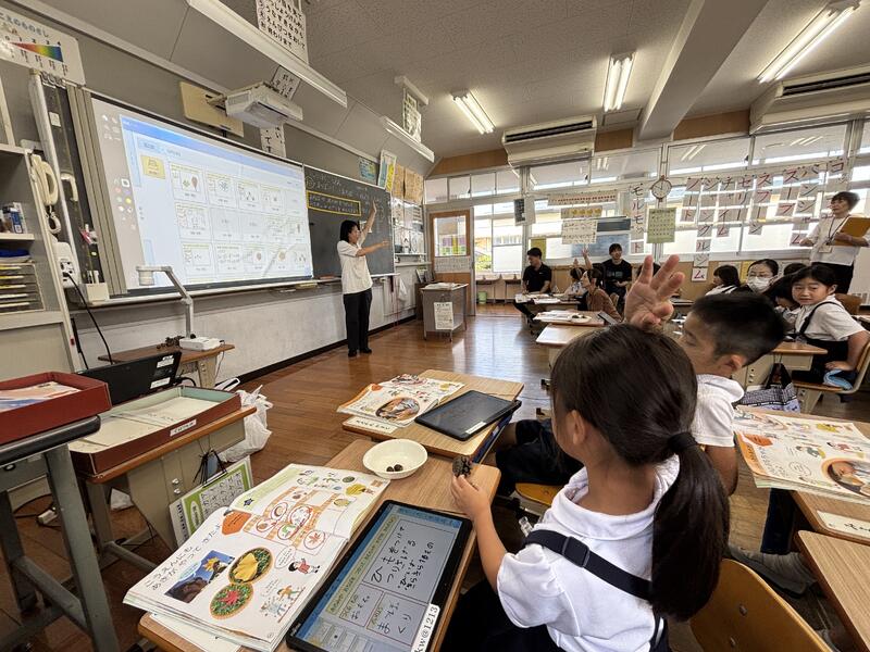 授業では、音読や書く活動の工夫、学び合いのための工夫、協働的な学びのためのICT機器の活用、「めあて」に対応した「まとめ」の工夫など、研究主任として提案された事項を具体的な場面として見ることができました。