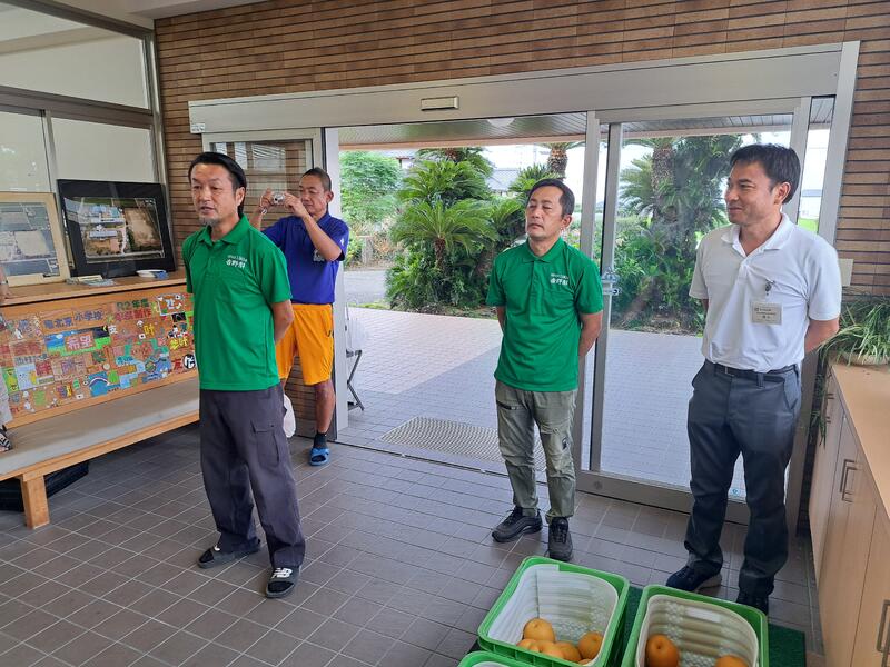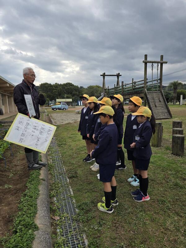 今日の1・2年生の生活科の授業は、「氷川町の農業~ふるさとと出会う~」と題し、ミヤザキファームからお越しいただき、農作物をつくることについて、いろいろな視点からお話を聞かせていただきました。