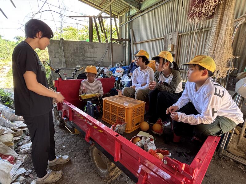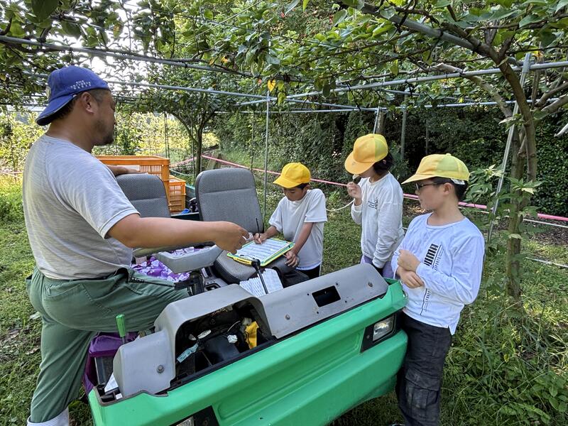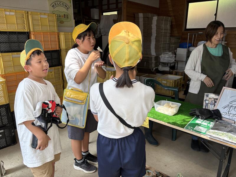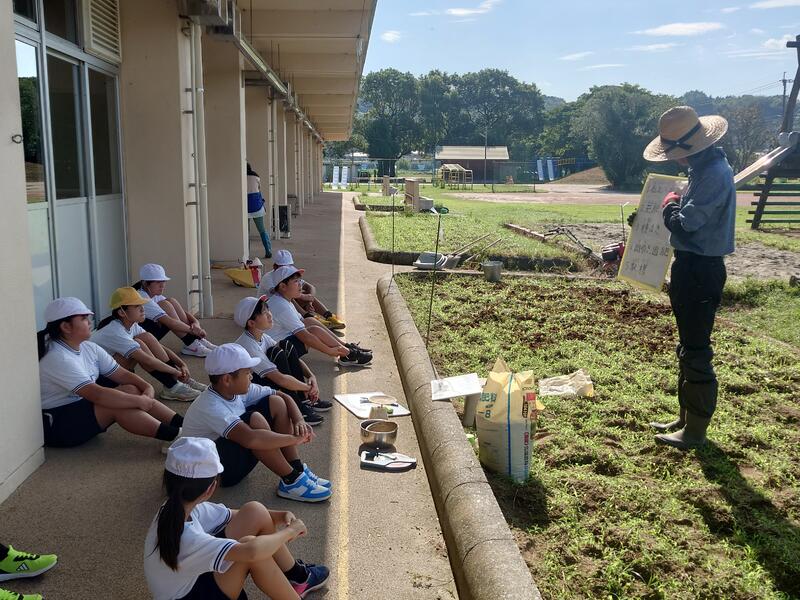 子どもたちは、身の回りにある農作物と自分たちのくらしの関わりや農業の仕事について興味深く聞いていました。