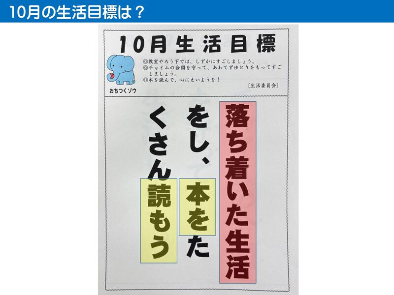 今年の委員会活動では、「子どもたち1人ひとりに活躍の場がある楽しい学校生活」にするために、自分たちで企画し、自分たちで実行し、その経験や反省を次の企画(活動)に活かすという自治活動に力を入れています。