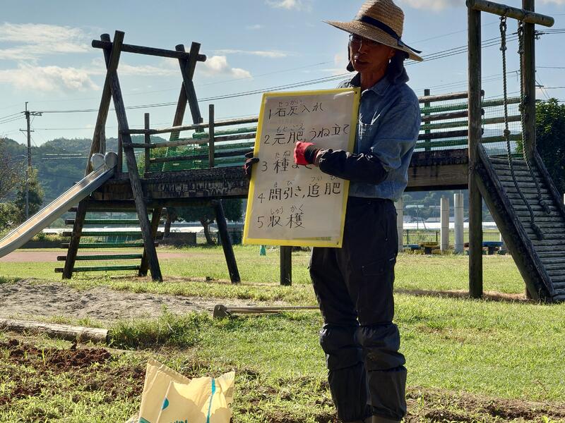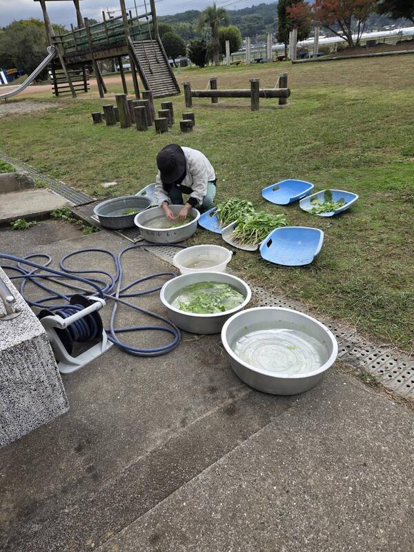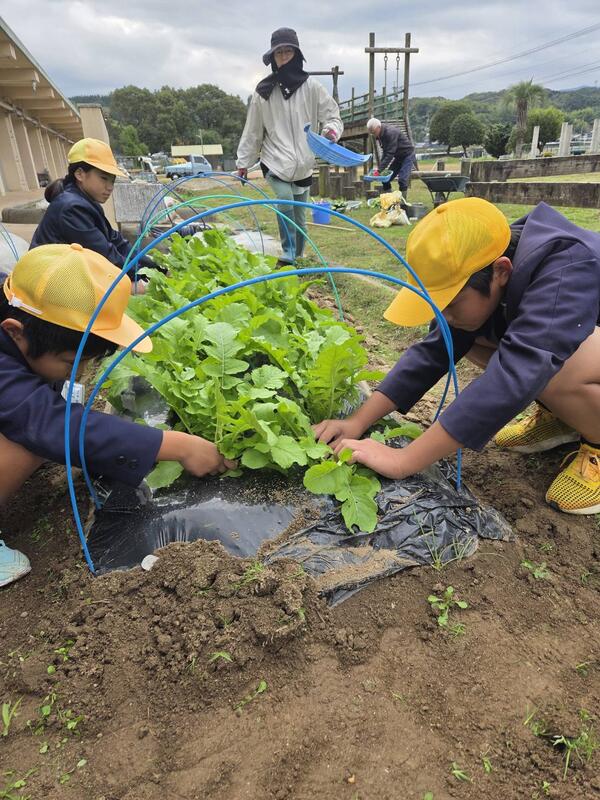 間引きした野菜は子どもたちが持って帰りますので、おいしくいただいてください。
