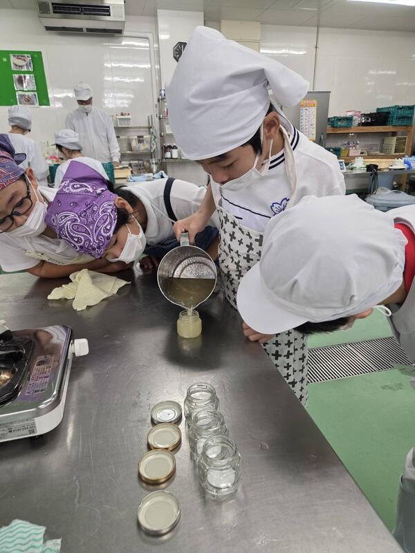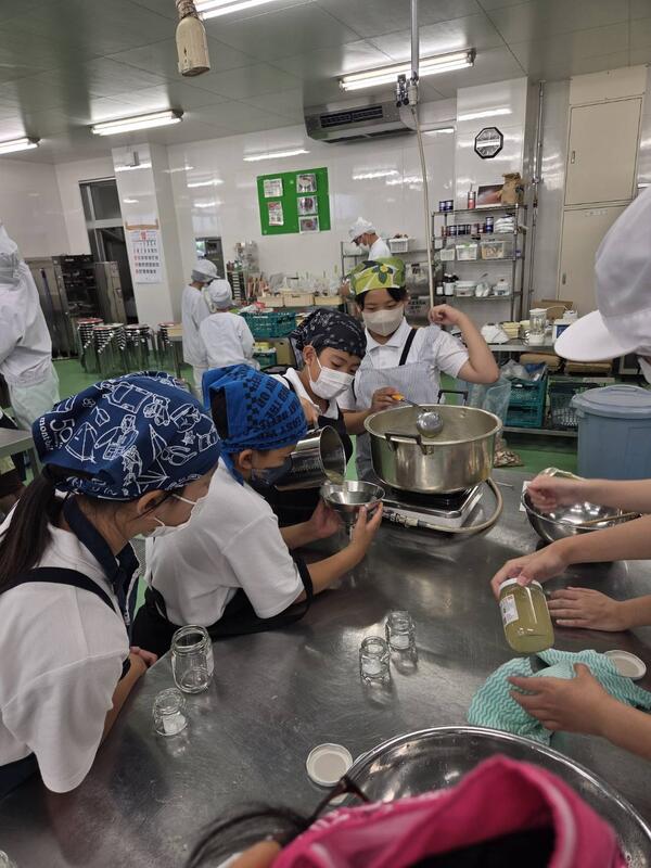 大豆、塩、麹を主原料にできる手作り味噌。できあがりまでしばらく期間がありますが、とても楽しみにしてる子どもたちです。