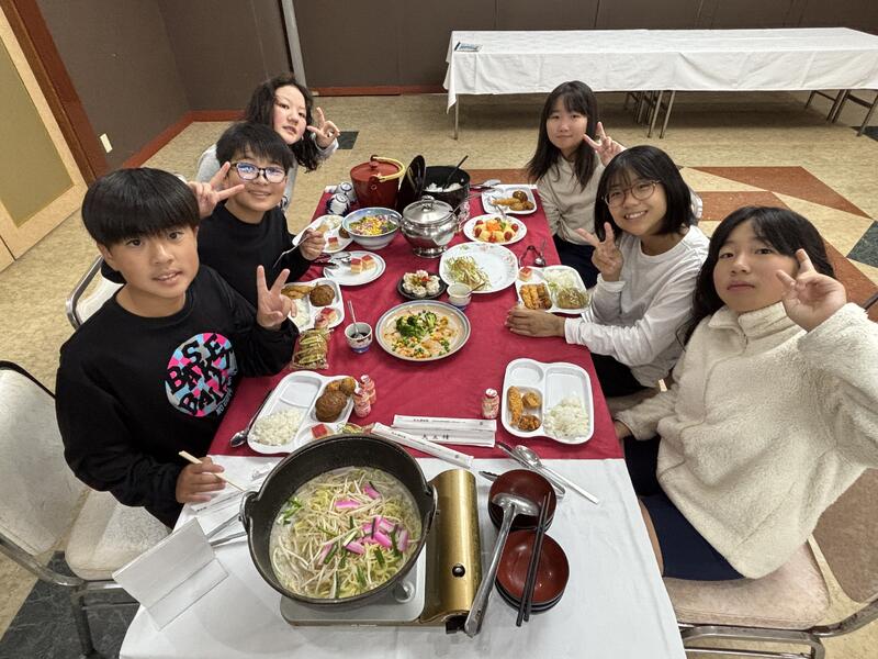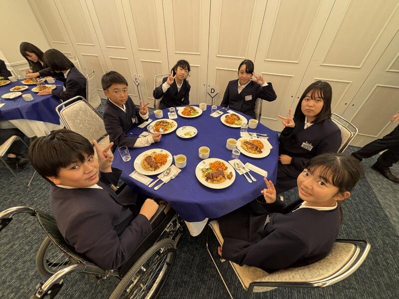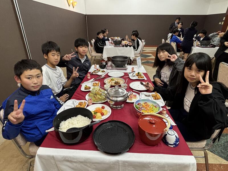 ホテルに到着した後は、お風呂を済ませ、1番のお楽しみ!「豪華な夕食」をみんなで美味しくいただきました。
