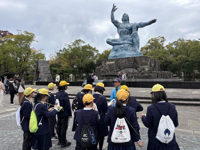 主な目的は、長崎での現地学習を通して、戦争の恐ろしさや平和の大切を学ぶこと。集団行動や協力することを通して、友だち同士の絆を深めること。このような学びを深めることを通して、社会生活の基礎的な態度を身に付けることです。