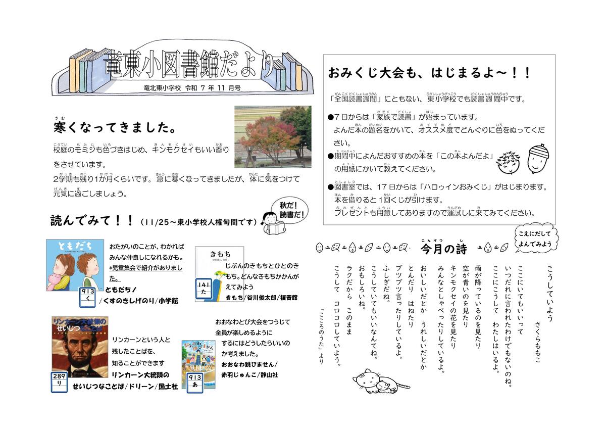 【図書室】「図書館だより(11月号)」を発行しました