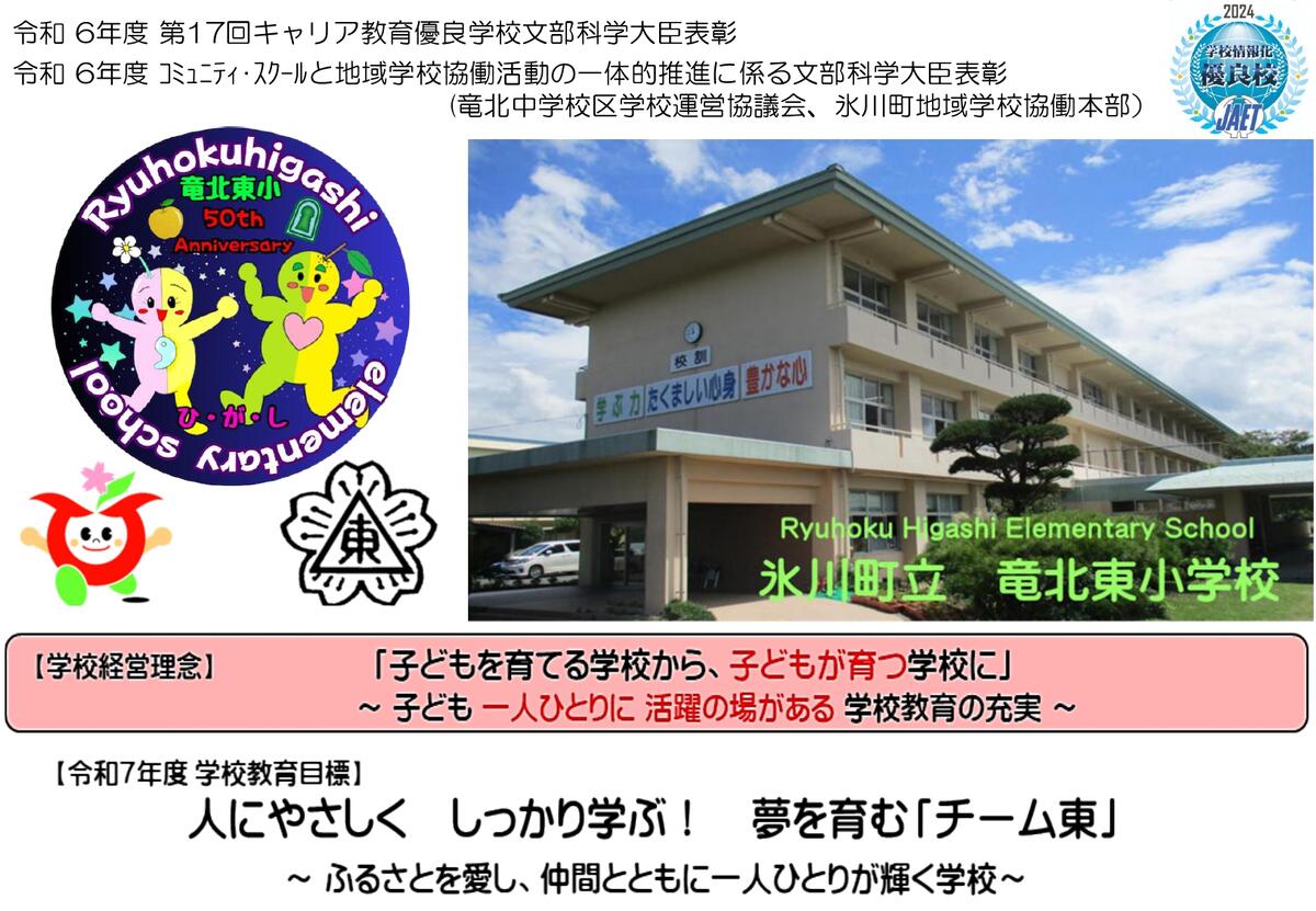 本校は、竜北東部小学校と竜北南部小学校が合併し設立され、今年50周年を迎えます。