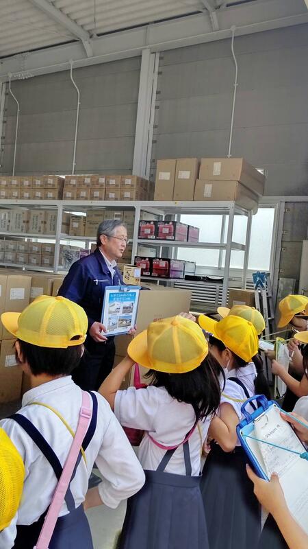 今日の3年生は、社会科の学習で、氷川町防災倉庫の見学に行きました。