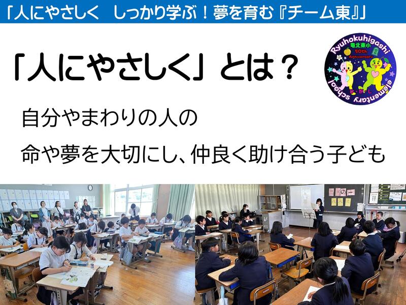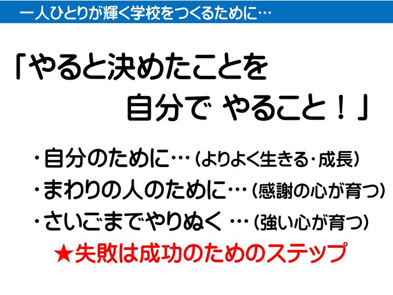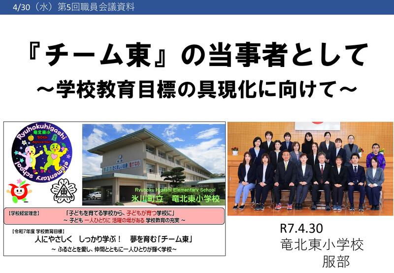 昨日の職員会議で、学校教育目標の具現化に向けて、私たちは『チーム東』の当事者としてどのように心を一つにして取り組んでいけばよいか考えました。