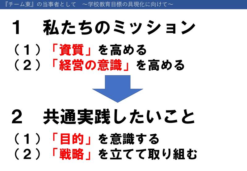 【教職員】『チーム東』の当事者として~学校教育目標の具現化に向けて~