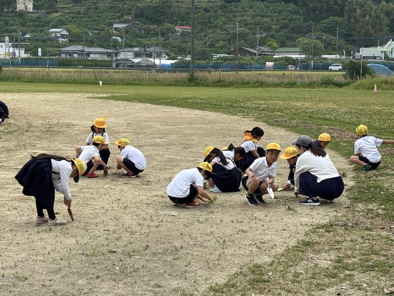 今日は、2時間目と3時間目の行間の時間を使って、運動場の草取り(愛校作業)を行いました。
