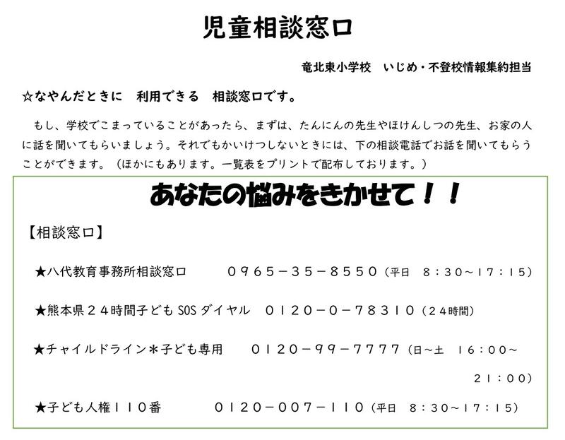 さて、大型連休中も、各ご家庭で、特に下記のことに留意して、安心・安全に過ごしてほしいと思います。