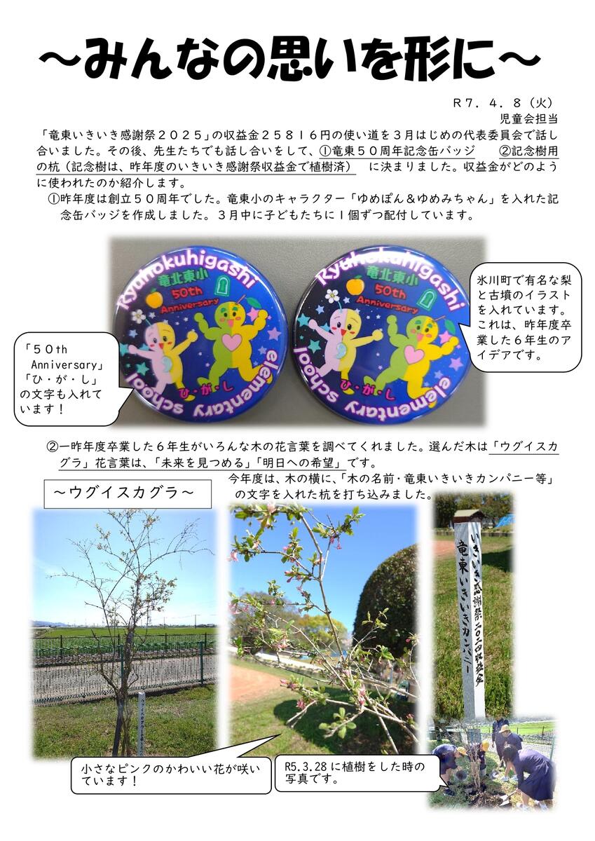 「竜東いきいき感謝祭2025」収益金の活用 ~みんなの思いを形に~