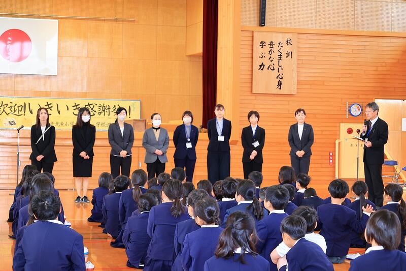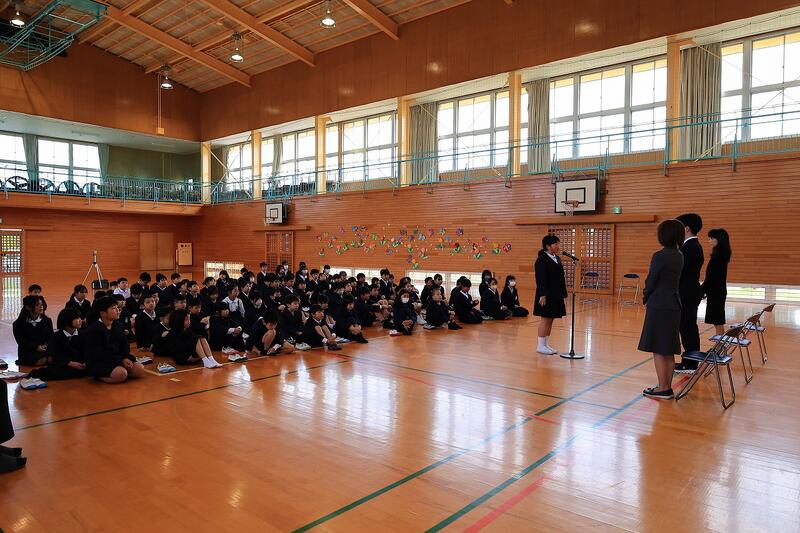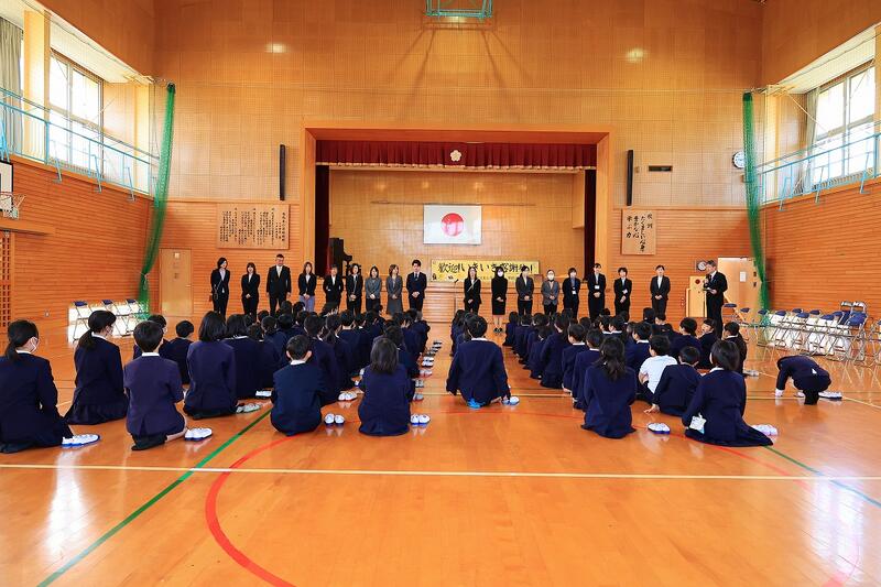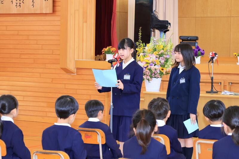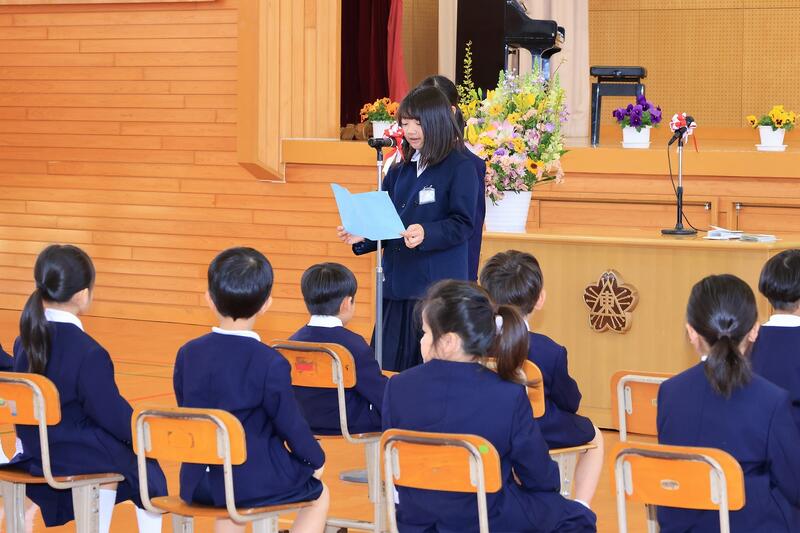 就任式では、新たに赴任された3名の先生を児童代表による歓迎の言葉でお迎えしました。