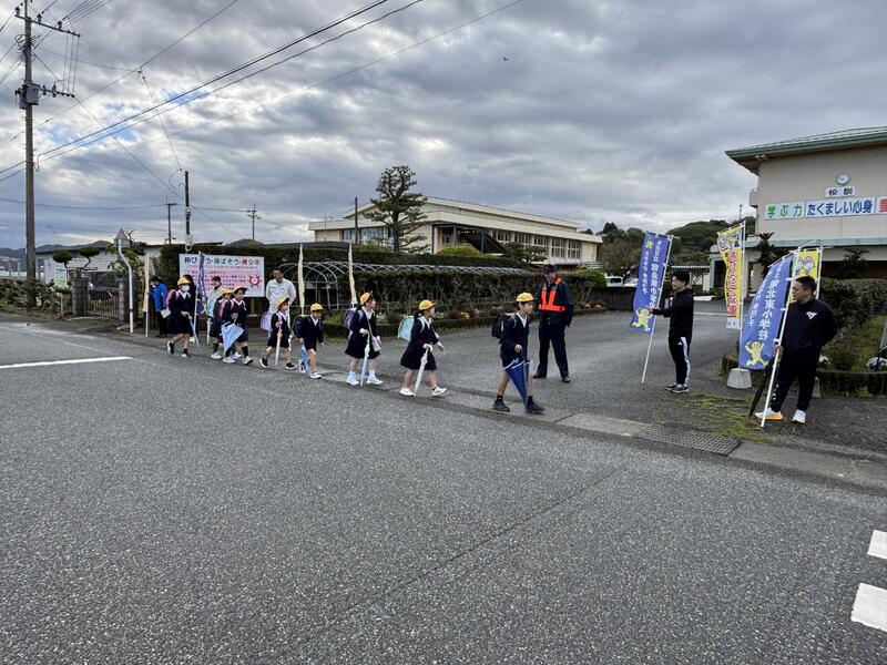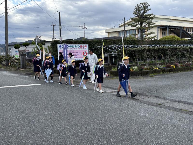子どもたちは、どの登校班も、きちんとした身なり(黄色い帽子、標準服等)で、一列に並んで登校してきました。