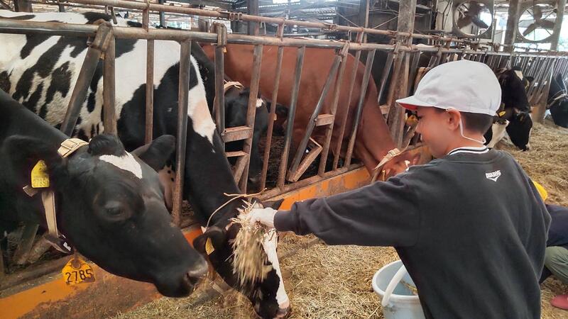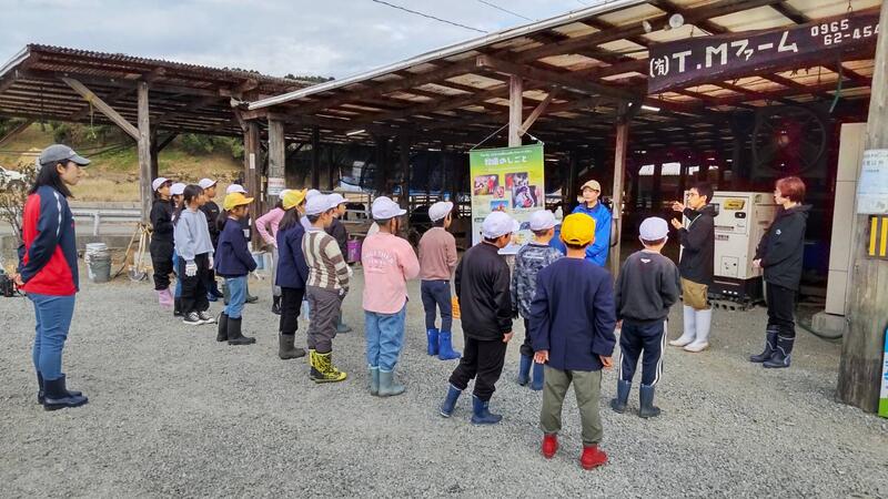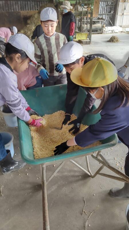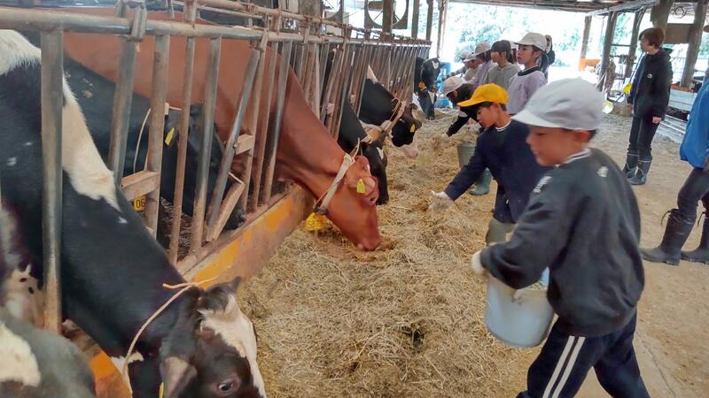 11月21日(木)、1学期の土曜授業で講師としてお招きした森本さんの牧場に行って、牧場の仕事を体験させていただきました。エサを与えたり、牛舎を掃除したりといろいろな仕事を体験するとともに、いろいろな工夫や知恵(アイデア)があることも学びました。