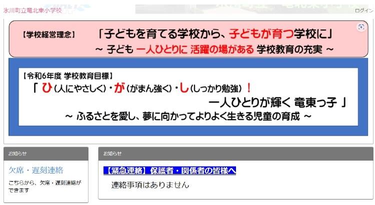 本ホームページの「欠席・遅刻連絡」(左下)をクリックすると…