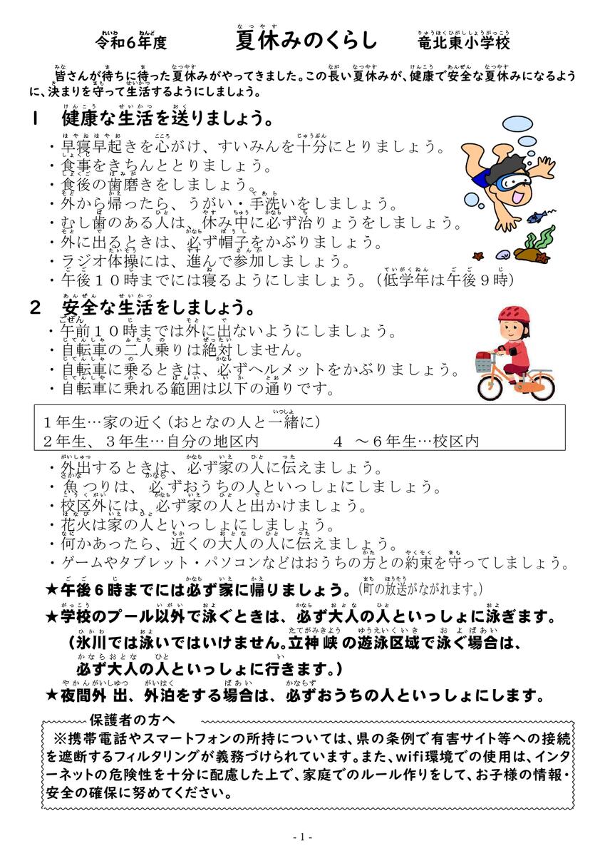 【生徒指導】夏休みのくらし