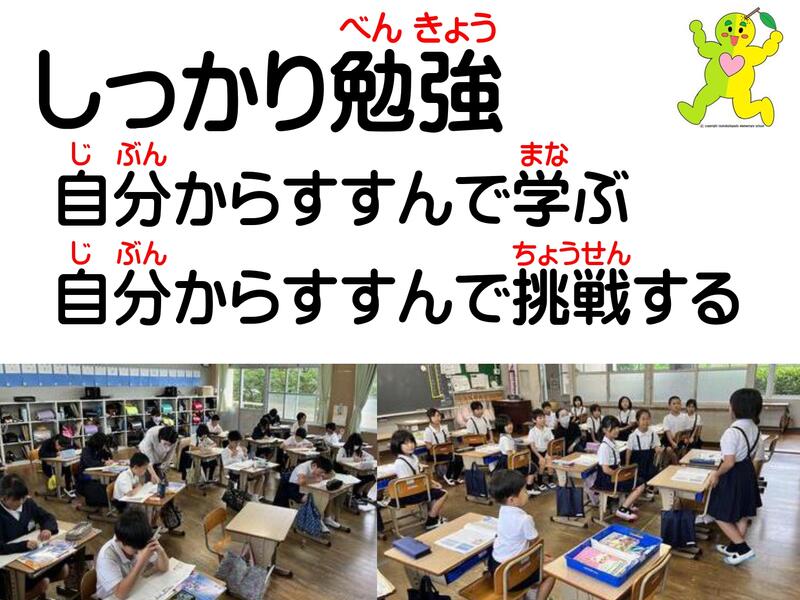 自分から進んで学ぶこと、自分から進んで挑戦することが大事ですね。授業や家庭学習で自分から進んで取り組んだことってどんなことですか?自分から進んで挑戦したことってどんなことですか?この写真は2年生と4年生の授業の様子です。学びの基本は、毎日の1時間1時間の授業をしっかり聞くことです。皆さんの授業中の学習態度。ずいぶんよくなったと思います。自分の考えを友だちや先生にはっきりと伝える発表力がつくと、さらに学ぶ力が高まります。誰にでも得意なこと苦手なことがあります。すぐに結果がでなくても、努力することで、人として必ず成長します。これからも自分からすすんで取り組む姿勢を大切にしていきましょう。