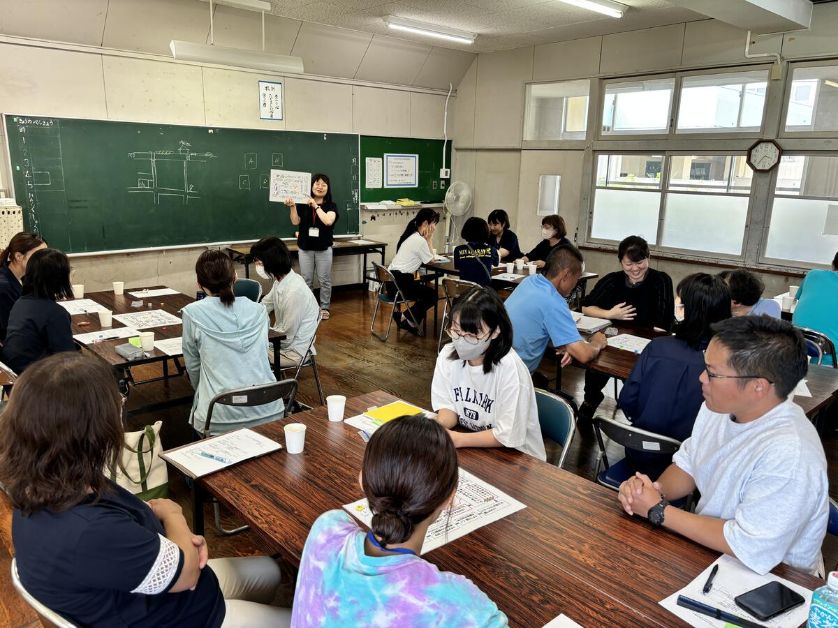 この研修は、毎年8月1日に開催され、町内5小中学校の全職員が参加します。