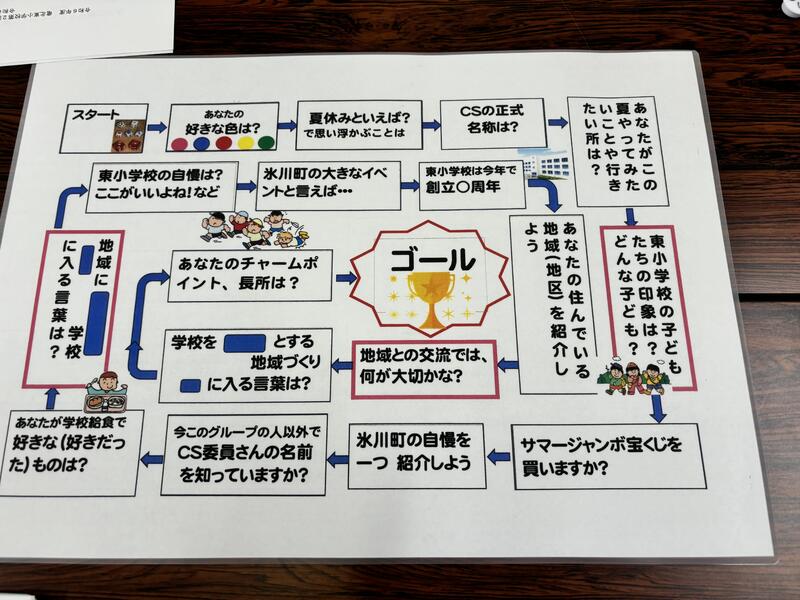 今日は、東小学校職員も参加しての学校運営協議会でしたので、「すごろくトーク」(下写真)で親睦を深めました。