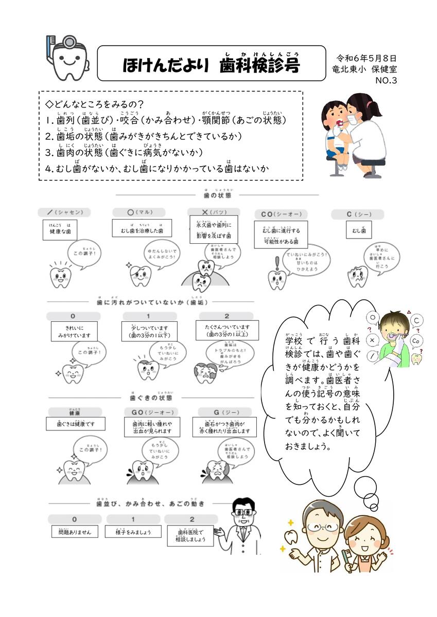 今後、診察結果について「ほけんだより(歯科検診号)」をもとに、ご家庭でも確認いただき、