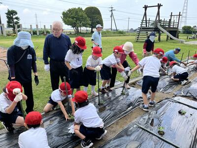 苗植えをしました。たくさんのご協力に感謝の心を持ちながら、立派な夏野菜が育ってくれるようしっかりお世話を
