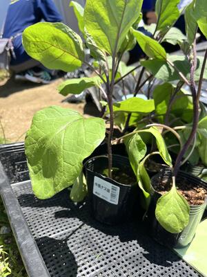 総合的な学習の時間に、「夏野菜を植えよう」と題し、オクラとナスの苗を植えました。