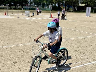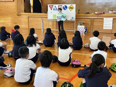 1.2年生は「道路の安全な歩き方」について、3.4年生は「自転車の安全な乗り方」について学びました。