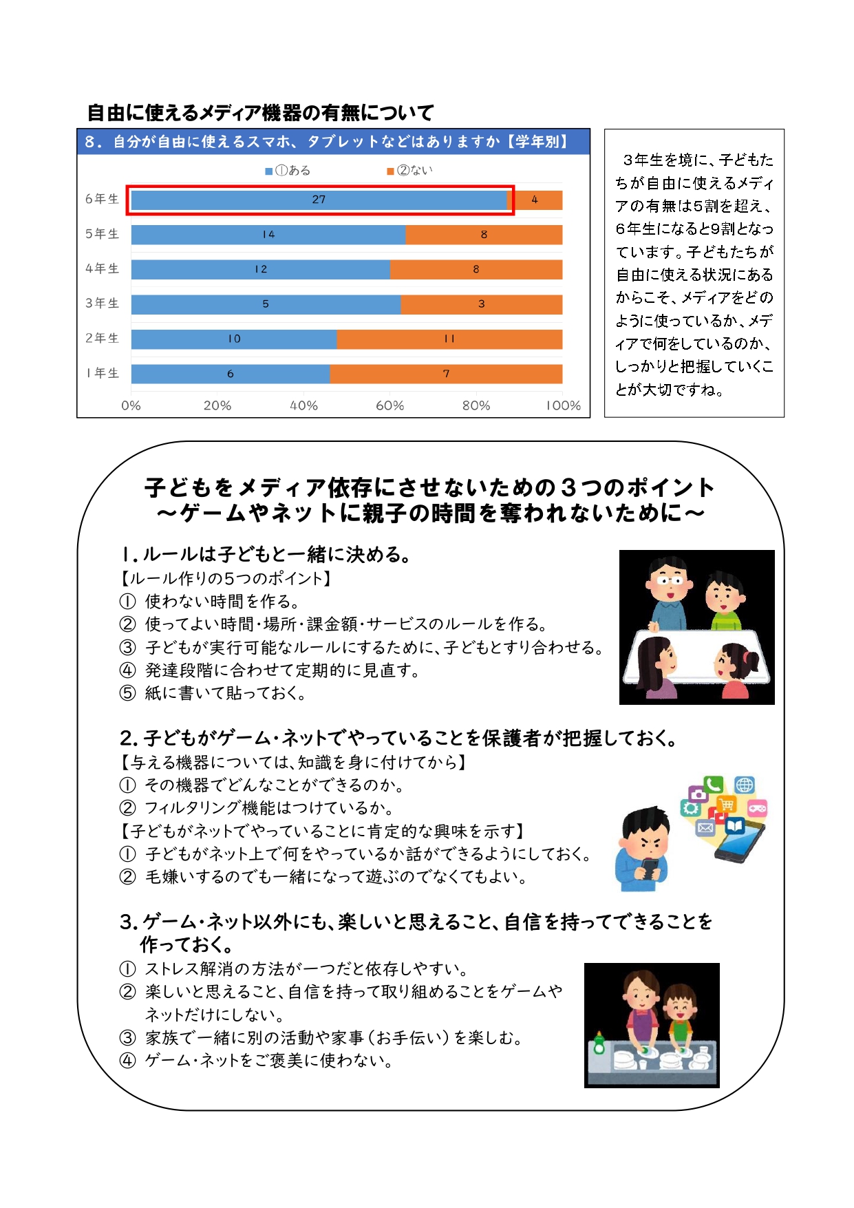 子どもをメディア依存にさせないための3つのポイント、ゲームやネットに親子の時間を奪われないために親子で考えて欲しいことなど、お子さんと話題にして欲しいと思います。
