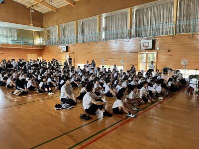 本日の授業参観後、体育館でPTA及び50周年実行委員会による創立50周年記念プロジェクト「親子教育講演会」が開催されました。